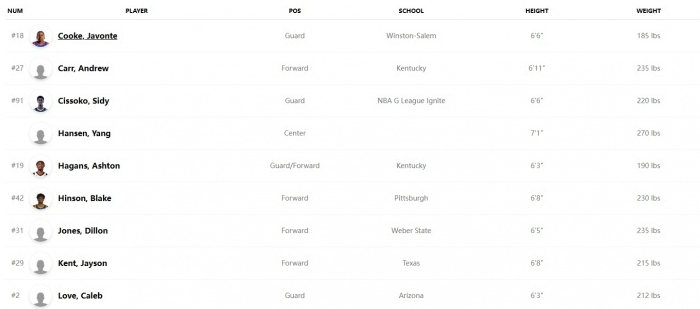 混音队官网更新了最新的球队名单,杨瀚森在列,其他三名双向球员——西索科、凯莱布-乐福和贾旺特-库克也在其中。