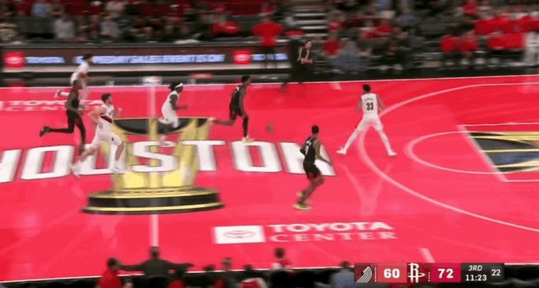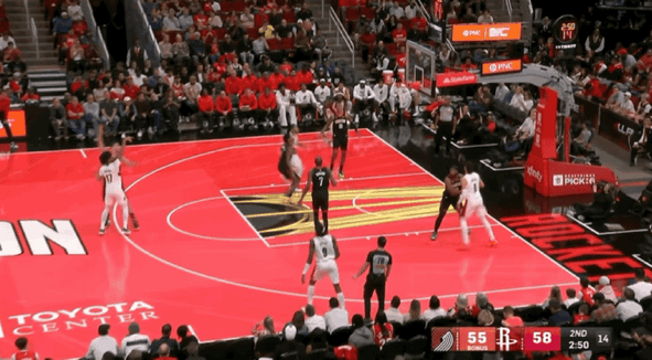 次节比赛开始,克里斯-穆雷连得5分,谢泼德和霍勒迪对飙三分,克林根补篮得手,霍勒迪三分命中,开拓者实现比分反超。杜兰特跳投命中,格兰特补篮打进,小史密斯和卡马拉对飙三分,阿门和杜兰特连续得分。阿夫迪亚连续得分,小史密斯扣篮得分,罗威补扣打进,火箭打出一波11-3的进攻高潮。