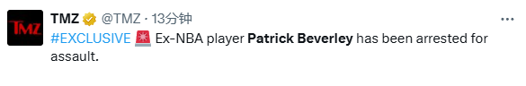 北京时间11月15日,前NBA球员贝弗利被逮捕,据美媒TMZ独家报道,前NBA球员帕特里克-贝弗利因袭击重罪指控在德州被捕。