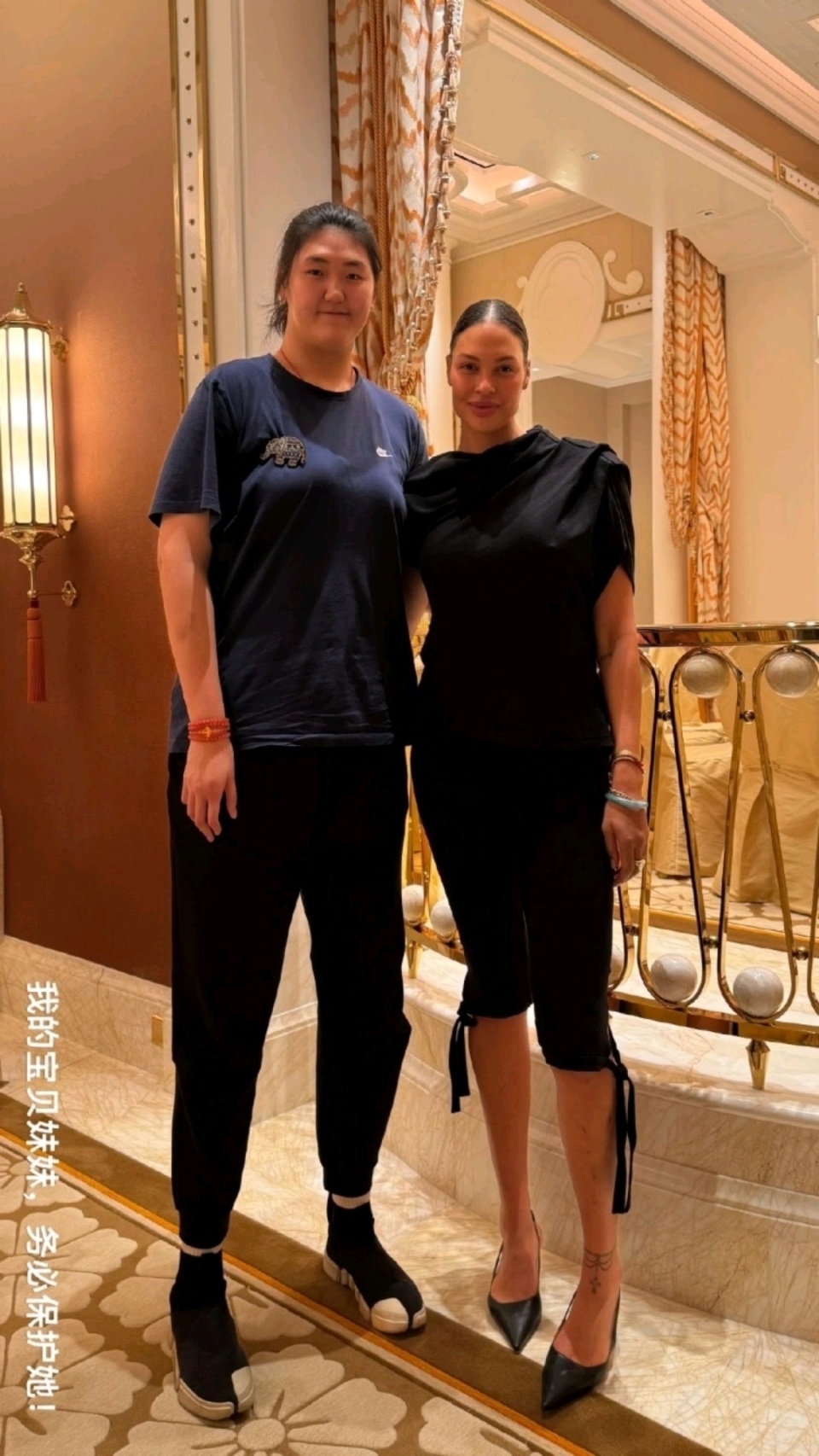近日,有着女版奥尼尔和女魔兽之称的坎贝奇,晒出了和中国女子篮球运动员张子宇的合照,配文还用中文写着,我的宝贝妹妹,必须保护她。