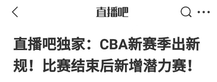 在前一段时间里,媒体曝出CBA联赛正在酝酿改革方案:为了锻炼轮换球员和年轻球员,在比赛结束后让非首发的国内球员进行10分钟的4V4比赛。当时这个方案正在商讨中,不少球迷直呼逆天,因为4V4的比赛和5V5的比赛是两种比赛,根本就起不到锻炼球员的效果。目前这个方案终于确定了,据国内知名媒体直播吧透露,新赛季的CBA联赛已经确定出现新规,各队都将和其他19个对手在常规赛结束后8分钟额外进行1场潜力赛。