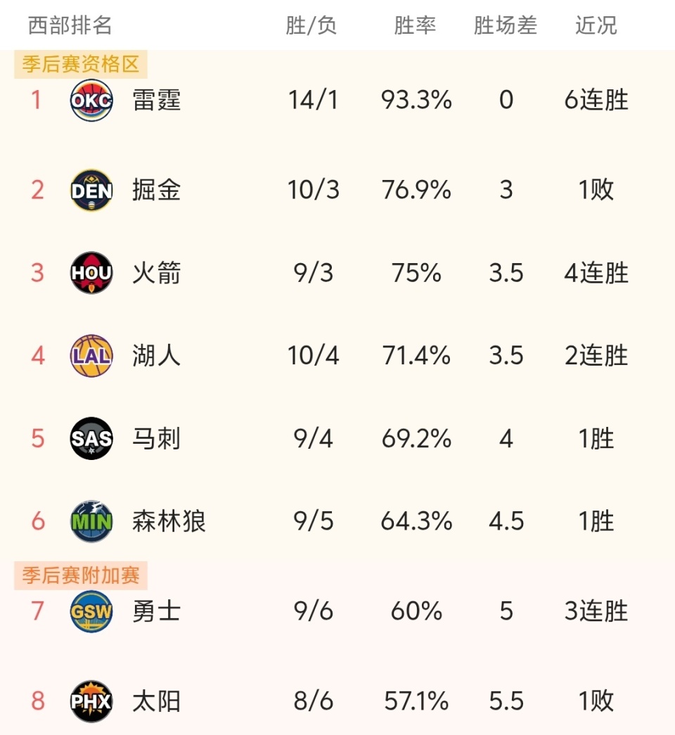 随着掘金127-130输球,七连胜被终结,NBA最新积分榜出炉:火箭利好!