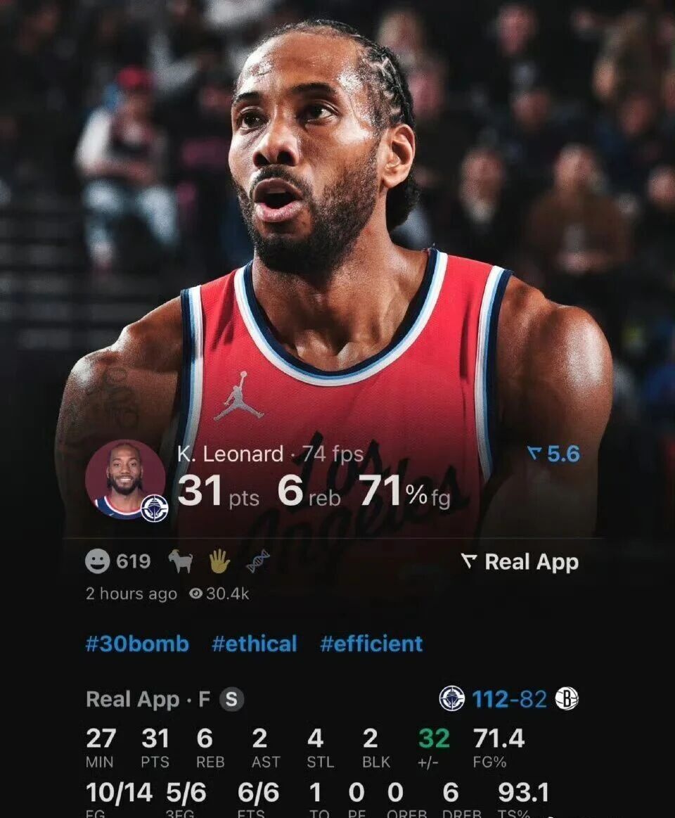 必须承认健康版本的伦纳德真强真稳,本赛季至今场均砍下24.3分5.7板3.5助2.5断,当今联盟为数不多攻防一体的核心前锋,三项命中率50.5%、40%和96.3%,跨入180俱乐部,无奈不怎么打球。
