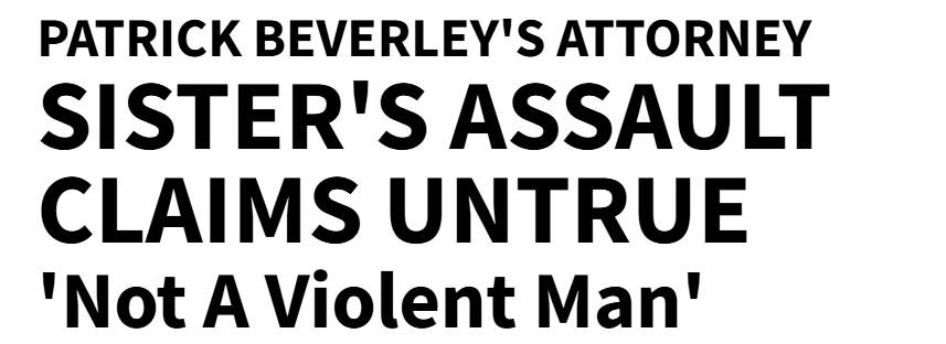 这位律师还称贝弗利是家人的“供养者”和“保护者”,其中包括他的妹妹。据称,贝弗利的妹妹于11月14日凌晨未经允许离家见男友,之后遭到贝弗利掐脖子和殴打。