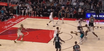 防守端还有一次牢牢卡住位置抢下篮板球的精彩回合,与夏普联动送出一次妙传助攻。