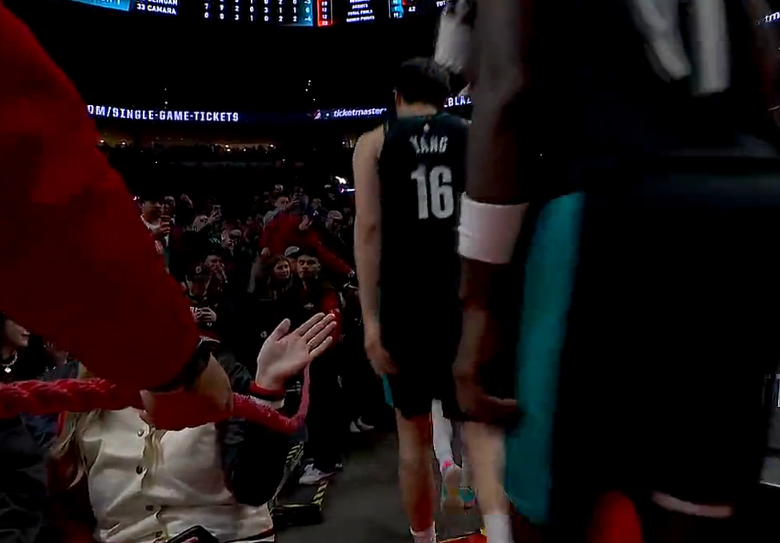 次节中段,中国球员杨瀚森获得登场机会,先是背打马威篮下2分命中,随后吃饼篮下完成暴扣。