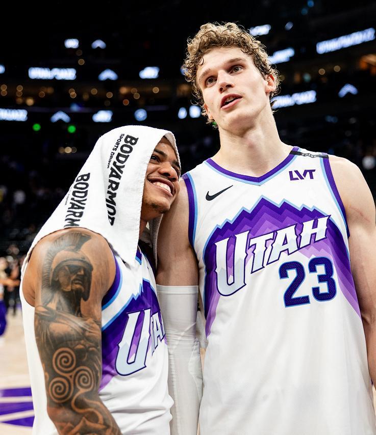 上一场面对公牛分别砍下34分和47分乔治和马尔卡宁,此役继续扛起了进攻大旗,在客场和紫金军团拼刺刀,其中23年首轮第16顺位被爵士选中的乔治,凭借13投5中的三分球,贡献了33分、4个篮板、7次助攻和2次抢断的全面个人数据,而马尔卡宁的效率也非常高,在湖人的重点盯防下,仍然凭借21中12的投篮成功率狂砍31分,可惜队友不给力,让爵士双星沦为了空砍帝。