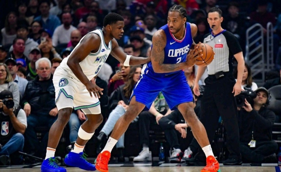 防守端是伦纳德就是“移动城墙”,单防和协防都顶尖。他凭着超长臂展和巨大手掌,防守时像贴膏药一样跟着对手,重心压得极低,不管是预判传球路线抢断,还是干扰对手投篮都很有一套,能从一号位防到四号位。面对挡拆时,他能快速换防内线,还能和队友形成防守闭环,压迫感让对手很难舒服出手。不过他的防守也有弱点,面对速度极快的小个子后卫,或者像字母哥那样的强力冲击型球员时,容易被对方用速度或力量突破,而且他的防守依赖身体状态,一旦体能下降,横移速度变慢,防守效果就会明显打折。