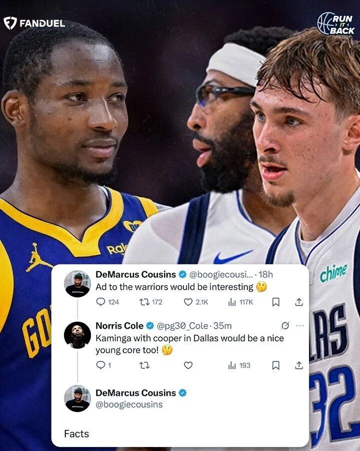 两届冠军后卫&前NBA球员诺里斯-科尔回复道:“库明加和弗拉格,能在达拉斯组成一个不错的年轻核心阵容。”