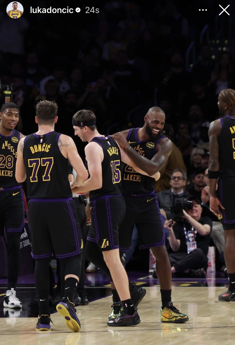 昨天詹姆斯晒高燃集锦庆祝复出,今日他连续晒出17张赛场照,继续庆祝开启第23年,晒出与东契奇同框、与海斯尽情庆祝、与前队友乐福同框的画面;老詹的庆祝动态又引热议,安东尼、乐福、特雷-杨和塔图姆等人为老詹点赞,湖人球员里夫斯和阿杜-蒂耶罗都在评论区留言:🐐(历史最佳Goat的谐音梗)。