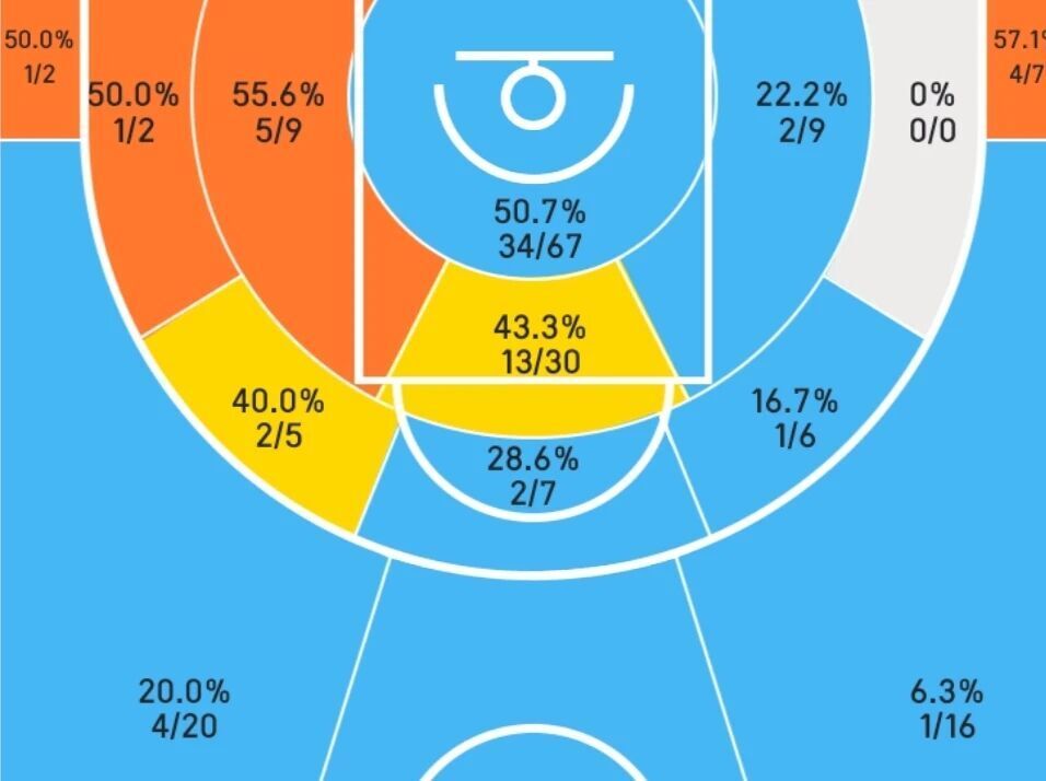 据统计,迄今为止莫兰特三分球60中10,命中率低至可怜的16.7%,在NBA史上所有赛季前12场三分出手数至少50次的球员里面命中率最低。