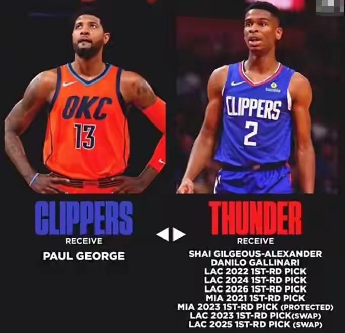 这其中快船也是下了大手笔,投入了球队未来七年的选秀权+亚历山大得到了莱昂纳德和保罗·乔治。