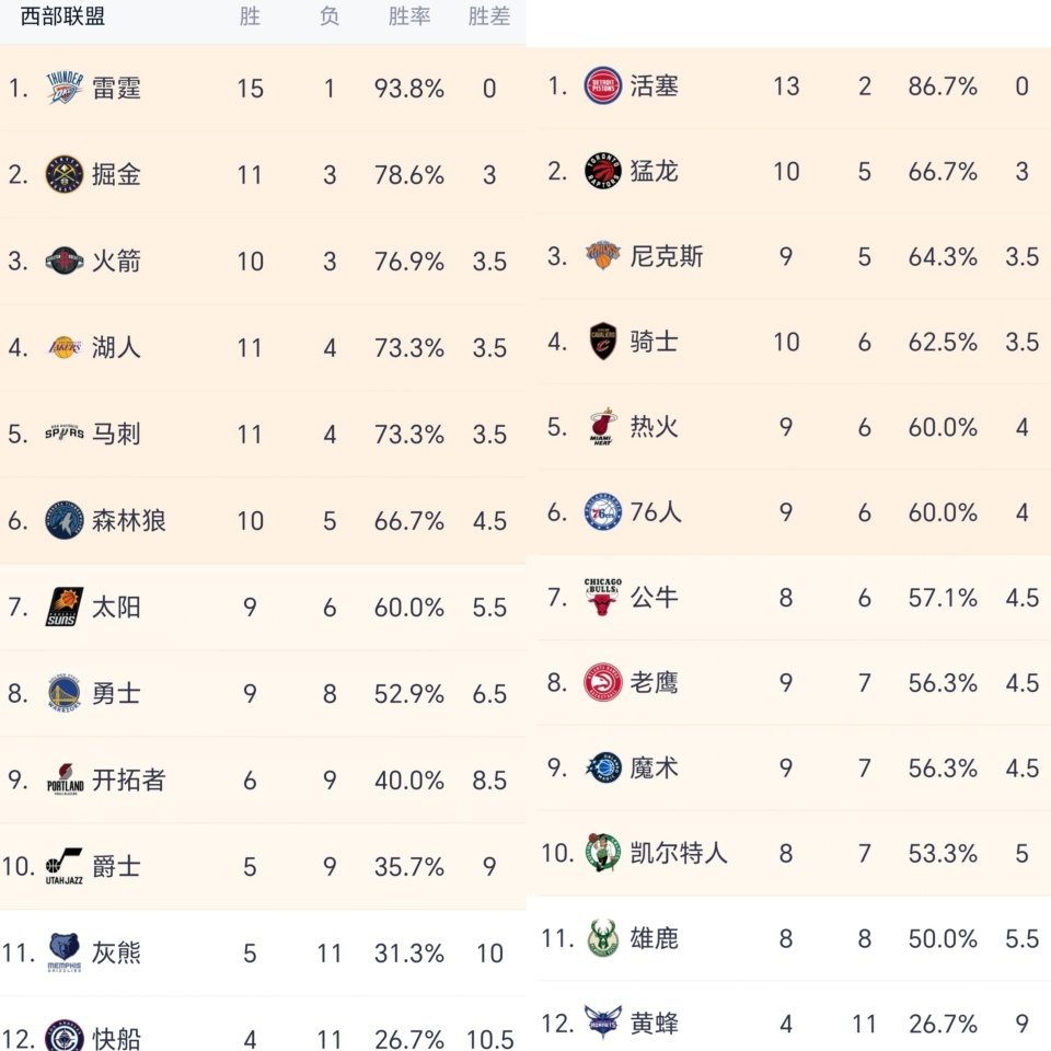 今年西部的两极分化比东部来得还要早,东部第11名的雄鹿目前还8胜8负生涯过半。