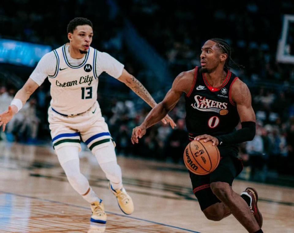 包括今年选中的新秀探花VJ-埃奇库姆,也很有天赋,76人的前景还是相当不错的。本场比赛,双方在首发阵容上面,76人这边派出的是,马克西,埃奇库姆,爱德华兹,乔治和德拉蒙德。雄鹿这边派出的是,罗林斯,AJ格林,库兹马,波蒂斯和特纳。