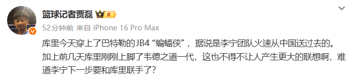 媒体人:库里上脚的JB4,是李宁团队火速从中国送过去的
