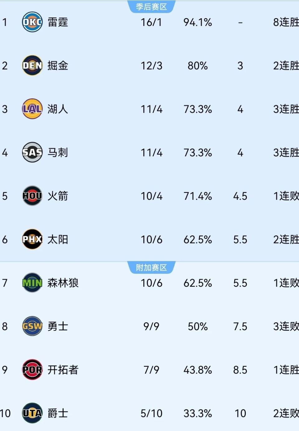 三连败,勇士现在以9胜9负排名西部第八,好在还领先西部第11的灰熊(5胜11负)三个胜场,暂时不至于有掉出附加赛的风险。