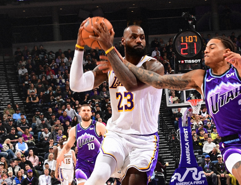 说句难听的话,三巨头同时在场的时间,真要越少越好,防守端的短板太大了,斯马特是最佳选项,文森特在场搭配东契奇和里夫斯防守也能提升不少。直接来看本场比赛。开场詹姆斯就抢断+快下暴扣打停爵士,乔治和马卡宁追分,东契奇和里夫斯单打造杀伤,爵士依靠米哈伊柳克和贝利很快反超比分,里夫斯连续出现传球失误,后半段斯马特联合东契奇火力全开,湖人瞬间反超并拉开分差。但节末詹姆斯回来后,爵士又追上比分,第一节湖人32-30爵士。第二节詹姆斯喂饼艾顿终结,爵士内外开花。