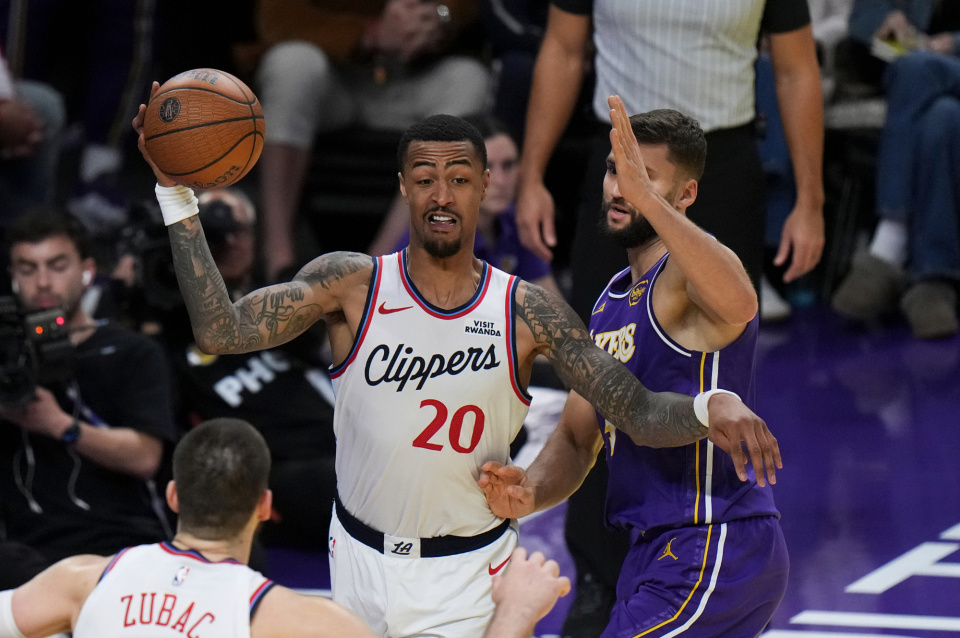 末节比赛开始,里夫斯3罚全中,祖巴茨补篮打进,海斯上篮得手。詹姆斯三分命中,湖人重新把握双位数领先优势,保罗突破上篮,里夫斯2罚全中。湖人连得6分,邓恩和里夫斯对飙三分,莱昂纳德上篮得手,里夫斯突破打进。八村垒空接暴扣,莱昂纳德连造犯规4罚全中,东契奇2罚全中回应,祖巴茨勾手得分。邓恩和海斯险些爆发冲突,东契奇技术犯规罚球得分,哈登突破抛投,湖人连得5分始终维持着双位数领先。后续快船无缘缩小分差,提前换下哈登等主力球员,最终湖人捍卫主场击败对手笑傲洛杉矶德比。