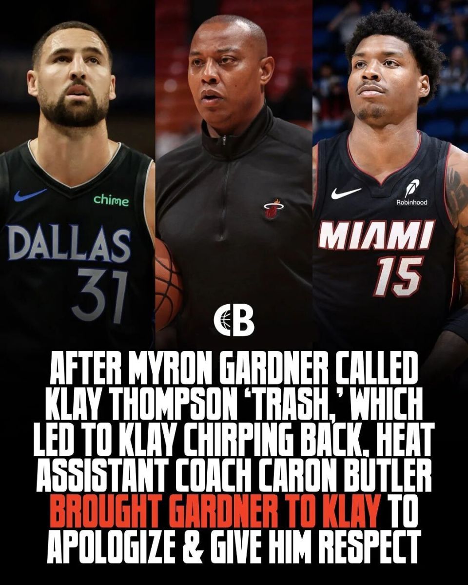 赛后热火的助理教练卡隆-巴特勒更是带着加德纳去给克莱道歉。