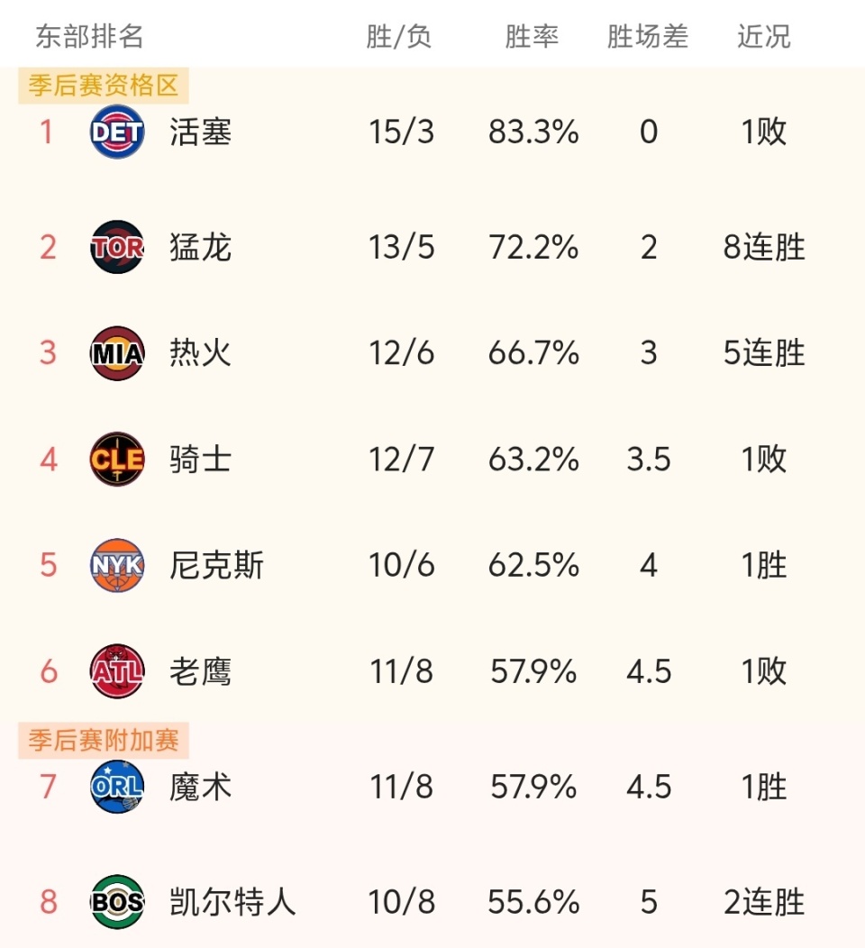 随着活塞114-117不敌凯尔特人,13连胜被终结,NBA最新积分榜出炉:活塞第1,绿军第8!