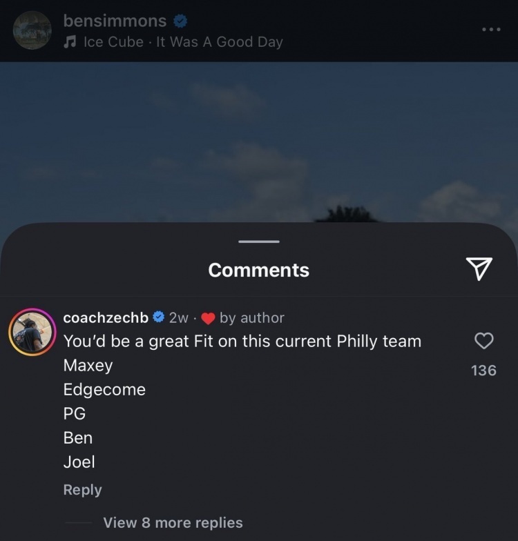 在今天早些时候,西蒙斯在自己社交媒体评论区点赞了网友评论:“你很适合现在的76人队,马克西+埃奇库姆+乔治+西蒙斯+恩比德。”