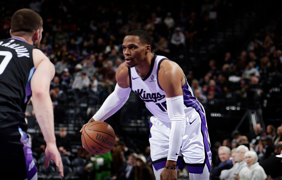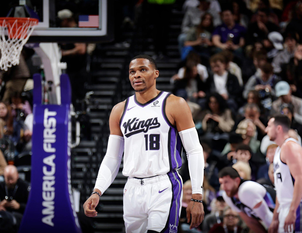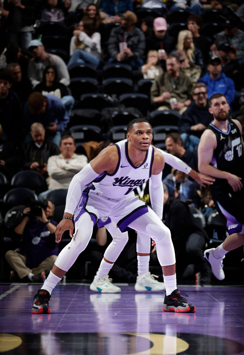 虽然国王队吃到败仗,但是威斯布鲁克的发挥依旧出色。全场比赛,威少一共首发出场33分钟,16投6中,其中三分球5中2,罚球3中2,合计得到16分12篮板14助攻,同时还有4个抢断,仅有3个失误。