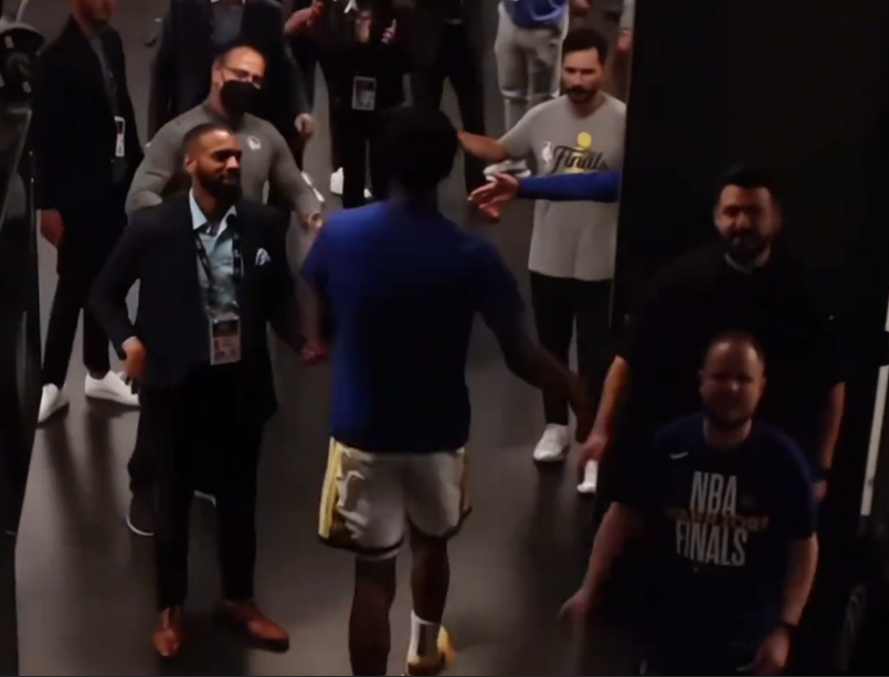 勇士队助理教练,甚至是工作人员,都停下了脚步,在球员通道与嘴哥一一击掌致意。