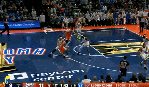 多尔特的这次抢断也是至关重要,加拿大双老在中线附近的这次包夹简直“我们意念合一”!多子这赛季投的铁归铁了点但关键时刻脑子还是清醒的,给SGA送两个罚球基本也就拿下比赛了。