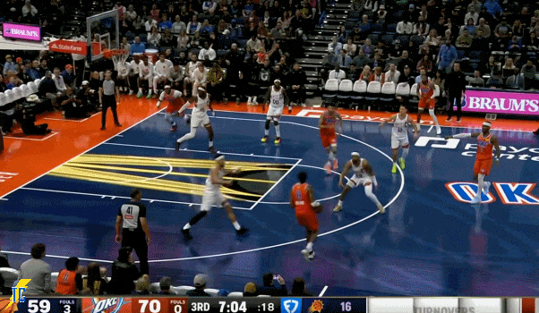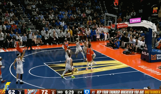 易边再战,切特在禁区内接球就投命中,雷霆第三节五分钟内打了一波16-7,太阳叫停!