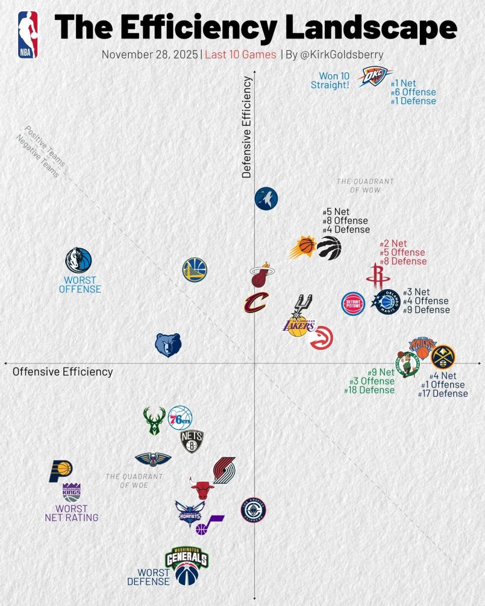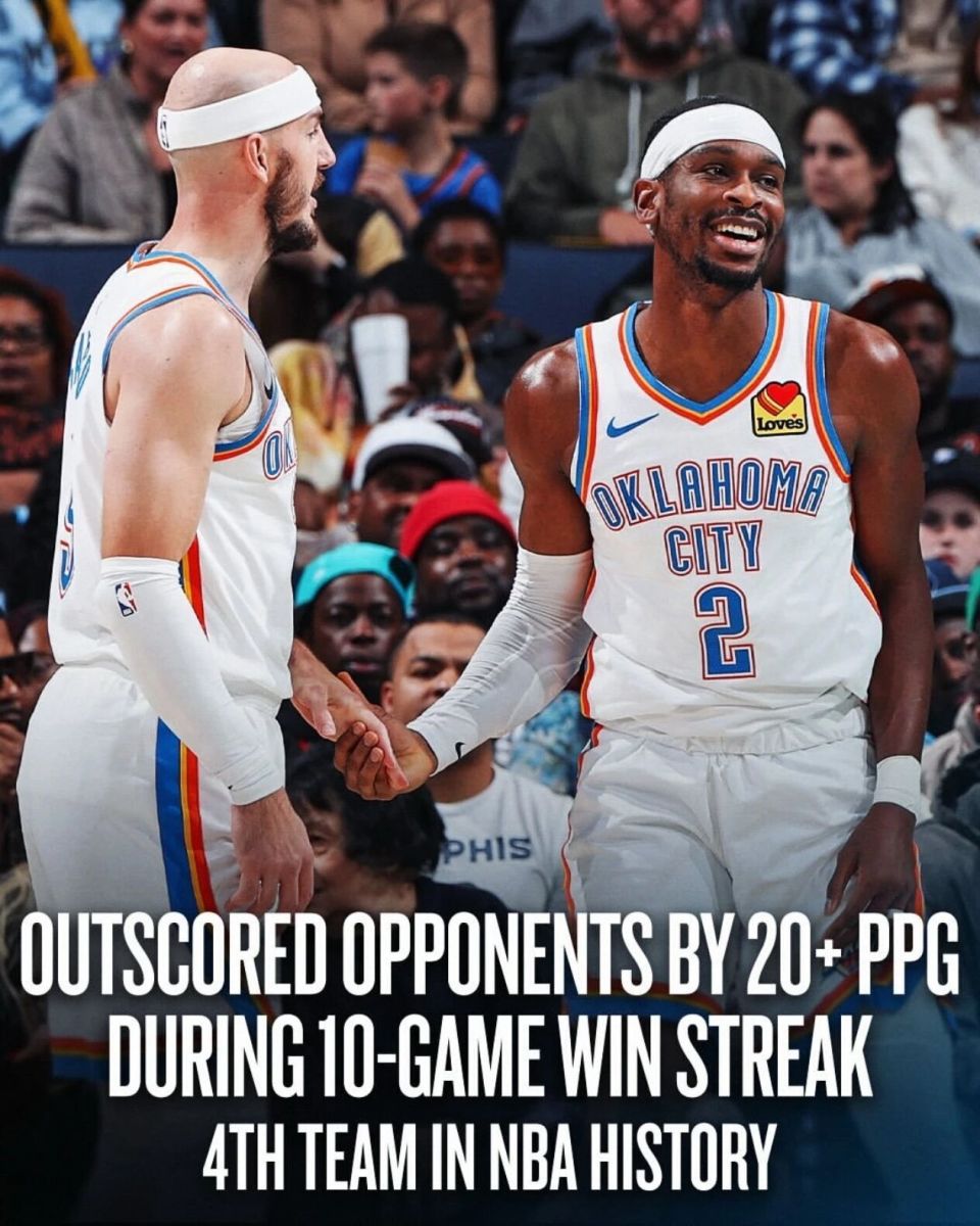 NBA赛前官方发帖吹你雷:在10连胜期间,雷霆场均得分比对手高出20+分,这是NBA历史上第四支达成此成就的球队!