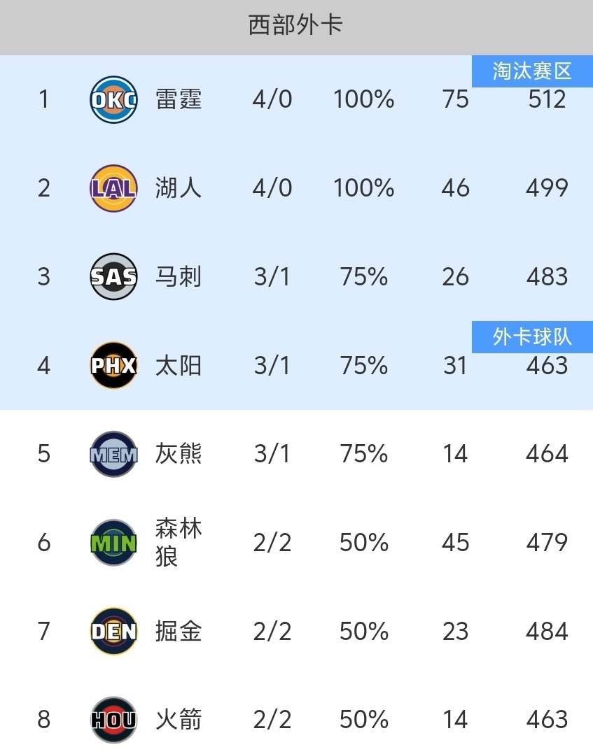 随着湖人6连胜、雷霆11连胜,NBA杯西部4强出炉:掘金出局!