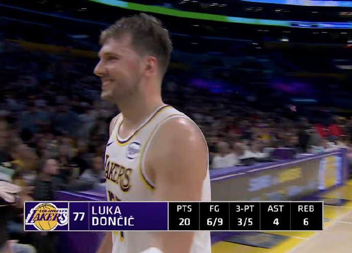 打疯!东契奇单节20分:湖人生涯4次队史第二 生涯27次超詹姆斯
