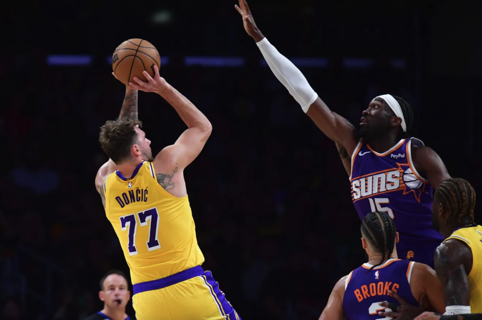 首节比赛,东契奇抛投打进,率先为湖人取得首次运动战进球。东契奇开局就展示不俗的进攻欲望,连续抛投得分,频繁突破给对手内线施加压力,太阳完全没有阻挡东契奇的方法。