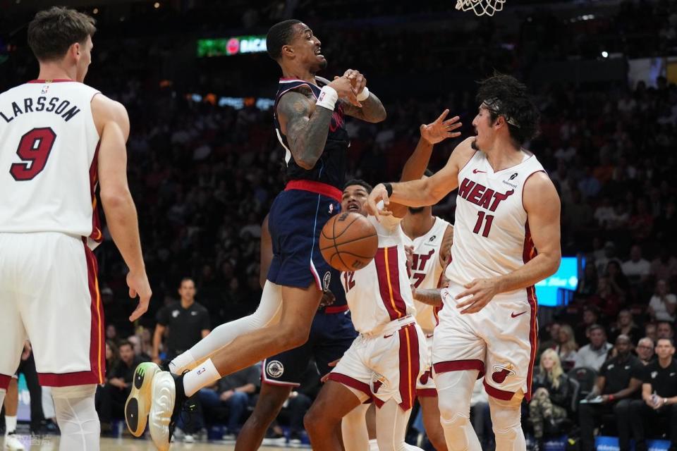 最终快船客场123-140惨败热火17分,遭遇5连败,我们一起来看一下球员们的具体表现吧!