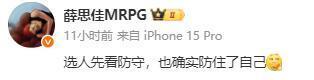 李弘权、王浩然、徐杰、王睿泽这些在全运会打得风生水起的射手,被郭士强忽略了。上海跟队记者薛思佳嘲讽郭士强:选人先看防守,也确实防住了自己。