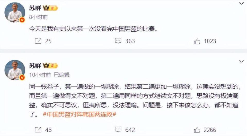 名嘴苏群怒批郭士强固执,不懂得调整和变通,“同一张卷子,第一遍做的一塌糊涂,结果第二遍更加一塌糊涂,这确实没想到的,而且第一遍做得文不对题,第二遍用同样的方式继续文不对题,思路没有极端调整,确实不可思议,匪夷所思,没法理喻”。麦穗丰喷道:世预赛次战延续首战12人名单的做法,更是把“固执”二字体现得淋漓尽致。