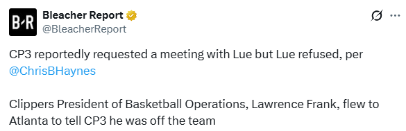 究竟快船抛弃保罗有什么样的内幕?名记Chris Haynes报道,消息源透露,几周前保罗曾想和球队主帅泰伦-卢进行一次会面,来讨论球队中存在的消极情绪,但泰伦-卢拒绝了请求。