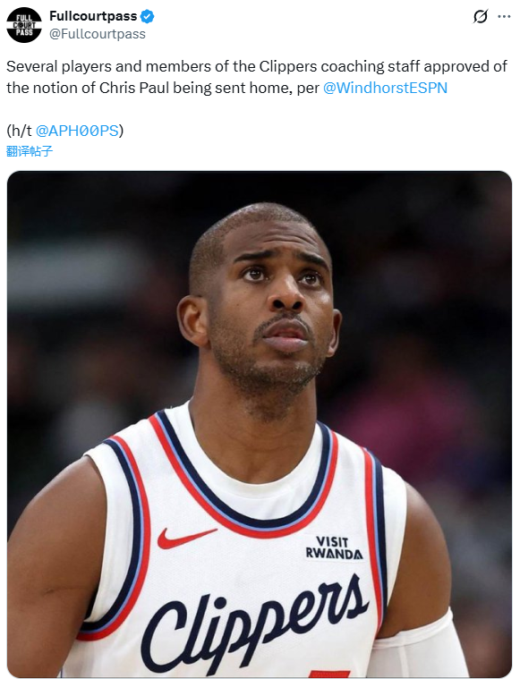 Shams后续报道,消息人士称,快船认为保罗的风格已经变得具有破坏性。