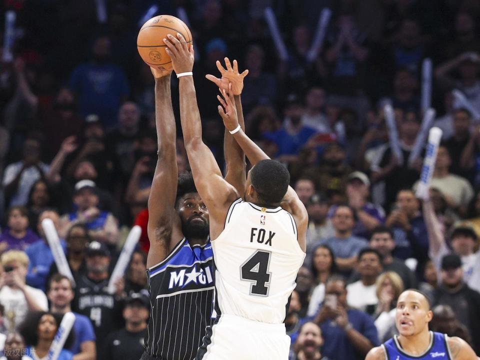 马刺力克魔术,福克斯上半场投篮9中4,三分球4中1,罚球1中0,拿到9分4篮板4助攻。