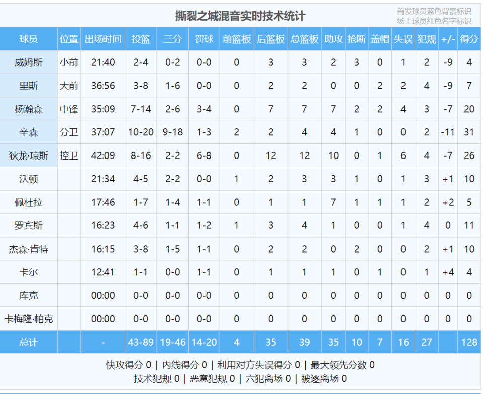 杨瀚森上场时间和助攻数,均是生涯最高,体能有所进步。快船前场板9比4碾压混音,小杨的后场篮板保护还是要注意。最后看看数据: