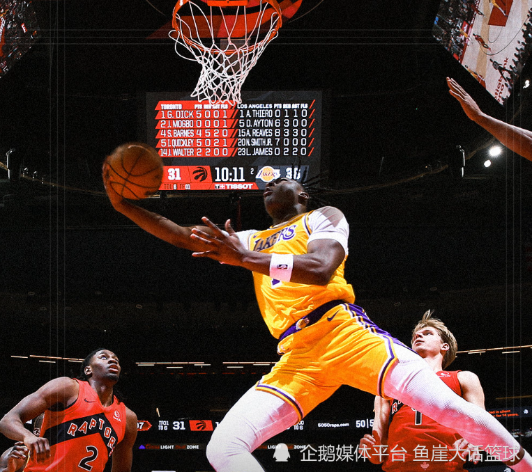 猛龙这场比赛打得相当漂亮,可惜在关键时刻英格拉姆连续打铁,最终猛龙无奈输球。全场比赛结束英格拉姆得到了20分7篮板7助攻的数据,巴恩斯得到了23分11篮板9助攻的数据,奎克利得到了13分1篮板5助攻的数据。里夫斯在这场比赛中是大发神威,当湖人陷入困境的时候,就是里夫斯挺身而出,可以说如果不是里夫斯在进攻端顶住猛龙反扑,那么湖人恐怕真的不一定能够顶到最后,全场比赛结束里夫斯21中13得到了44分5篮板10助攻的数据,其中罚球15中13。这场比赛詹姆斯的进攻状态糟糕,甚至在结束的时候詹姆斯的得分上双的纪录被终结,但是在最后时刻詹姆斯的选择很正确,毕竟在最后时刻詹姆斯本来有机会去得分上双,可这个时候詹姆斯选择传球到空位的八村塁,最终八村塁命中三分完成绝杀,所以詹姆斯的得分纪录虽然被终结,但是詹姆斯的选择太正确了,全场比赛结束詹姆斯15中3得到了8分6篮板11助攻的数据。至于八村塁得到了12分3篮板的数据,艾顿得到了17分8篮板的数据,拉拉维亚得到了14分7篮板的数据。