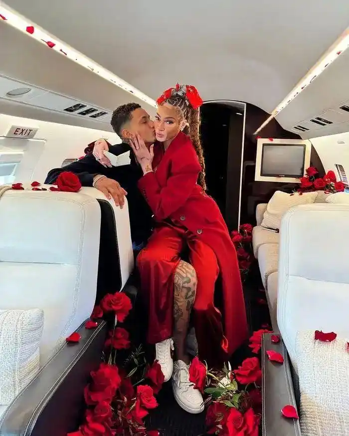 在2025年的情人节这一天,库兹马向温妮求婚成功。在晒出的照片中,库兹马大方展示了向温妮求婚准备的超大钻戒,并在飞机上精心布置了浪漫的红玫瑰。