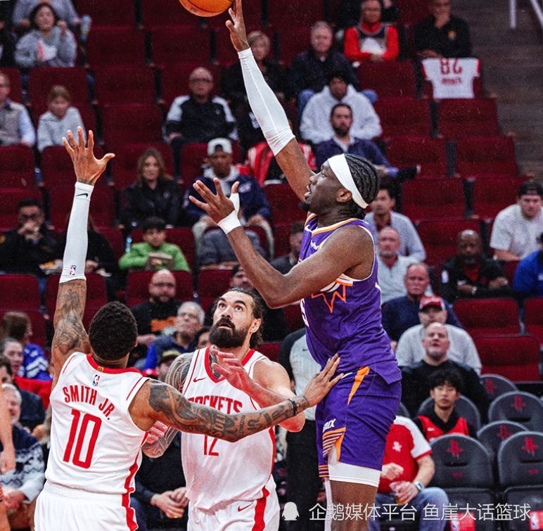 北京时间12月5日火箭主场对阵太阳,全场比赛结束火箭以117-98成功击败了太阳。火箭在本赛季不仅仅是打出了联盟第2的进攻效率,同时火箭还打出了联盟第2的防守效率,如今火箭以14胜5负的战绩排在西部第三的位置,今天的比赛中申京因病缺席比赛。至于太阳虽然在本赛季排在西部第七的位置,但是他们本赛季场均10.9个抢断排在联盟第一的位置,不过今天的比赛布克因为腹股沟拉伤缺席比赛,所以太阳想赢球狄龙需要拿出爆发表现。本场比赛火箭首发为:阿门、奥科吉、杜兰特、史密斯和亚当斯,太阳首发为:吉莱斯皮、阿伦、狄龙、奥尼尔和马威。