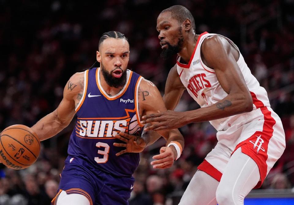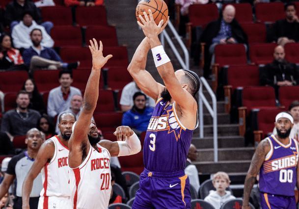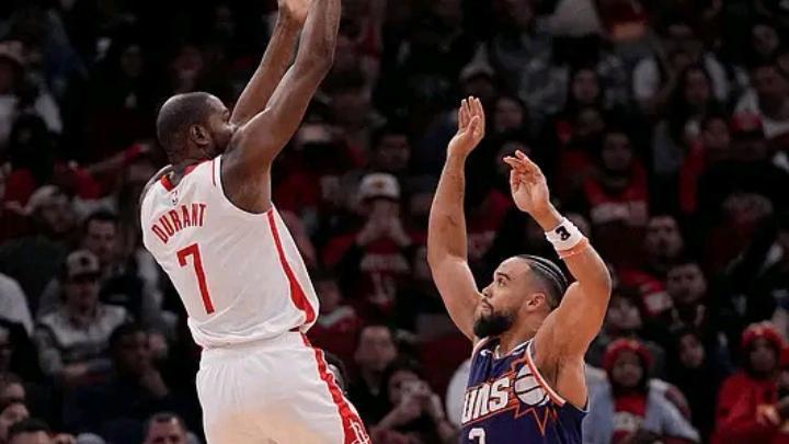 北京时间12月6日,NBA常规赛,火箭坐镇主场迎击太阳。本场比赛之前,火箭14胜5负排名西部第3,作为联盟第一档次的争冠球队。火箭阵容结构太扎实,平均尺寸联盟最高,人人都是攻防一体,他们场均篮板球高达50.3次,断层领跑联盟第一。杜兰特本赛季的数据,相比前几年略有下滑,但是问题不大,场均25分仍能排名全队第一,而火箭其他球员,像申京,阿门,都具备全明星的能力。另一边的太阳队,本场比赛之前,13胜9负排名西部第7,即便休赛期送走了比尔和KD,现在的太阳却依然坚挺,冲击季后赛绰绰有余,新援布鲁克斯这个赛季表现尤其出色。