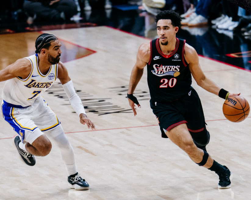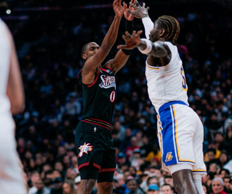 开场费城的进攻效率很高,湖人防守被撕碎,费城17-9领先打停雷迪克。暂停后湖人还是先从防守做起,费城这边的进攻效率一下就大打折扣了,埃奇库姆连连打铁,恩比德、乔治外线也打铁,湖人直接将分差缩小到4分。随着东契奇的手感打开,八村垒连中三分,湖人在首节打完时已经将分差扳平30-30。