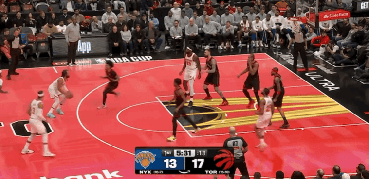 布伦森联动唐斯持续攻筐,频繁在禁区给到猛龙很大的防守压力,伴随着布伦森抛投打进,双方分差首次来到双位数。尼克斯打出狂野的防守反击,成功提速引领球队节奏压制猛龙,让猛龙长达2分57秒一分不得,尼克斯趁势打出一波9-0的进攻高潮。