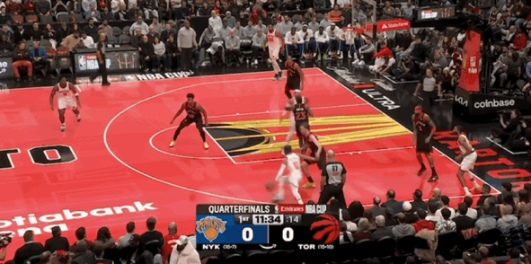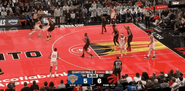 布伦森遭遇对手包夹,但这也给到尼克斯更多空位得分机会,猛龙眼看难以追分,直接在最后2分05秒主动犯规,在死球情况下换下主力球员,比赛进入垃圾时间,最终尼克斯轻取击败猛龙挺进杯赛四强。