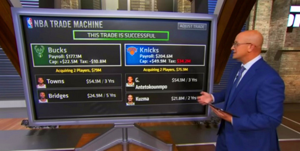 为此,薪资专家Bobby Marks晒出了一笔2换2交易方案,具体内容如下:
