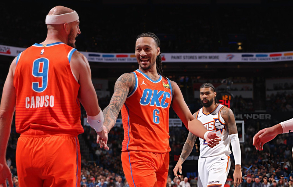 北京时间12月11日,NBA常规赛继续进行。在今天一场NBA杯淘汰赛中,雷霆队主场138-89轻松击败太阳队,取得了16连胜,并且晋级NBA杯的四强。
