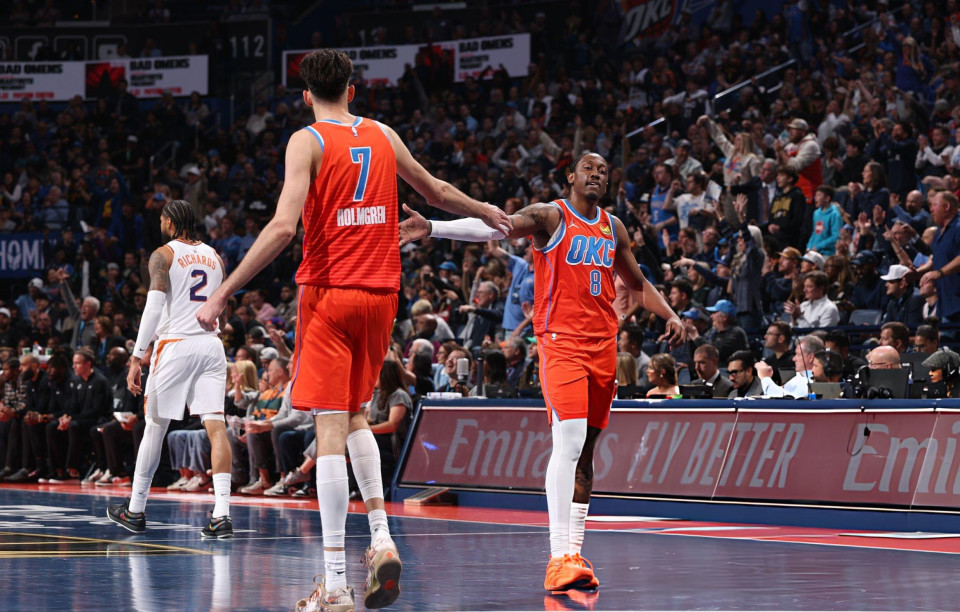 面对没有布克的太阳队,雷霆队丝毫没有松懈,他们在首节便建立了15分的领先优势,随后在上半场结束前扩大到26分。亚历山大等主力球员第三节继续扩大领先,并且完成三节打卡,末节分差更是一度来到53分!最终雷霆队主场收获一场大胜,亚历山大拿到28分8助攻,霍姆格伦24分8篮板,杰伦-威廉姆斯15分5篮板5助攻,多尔特12分。